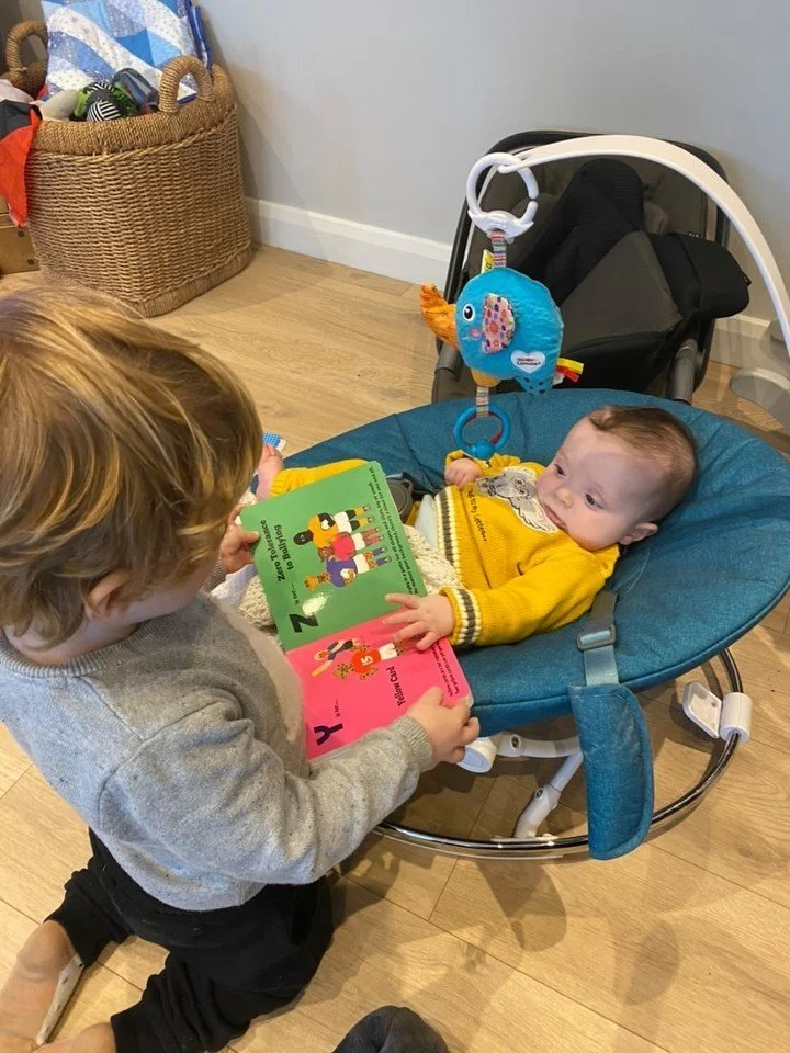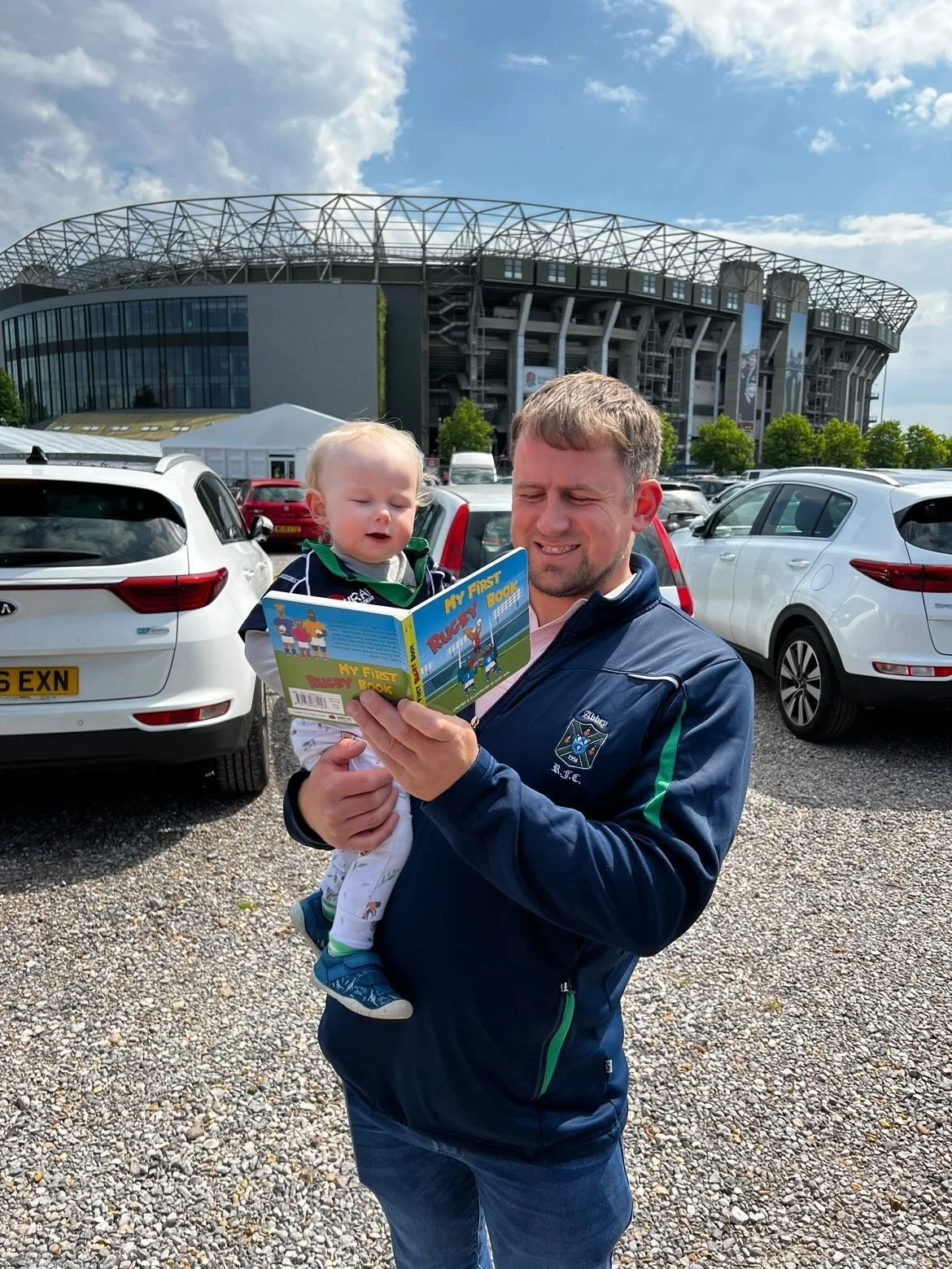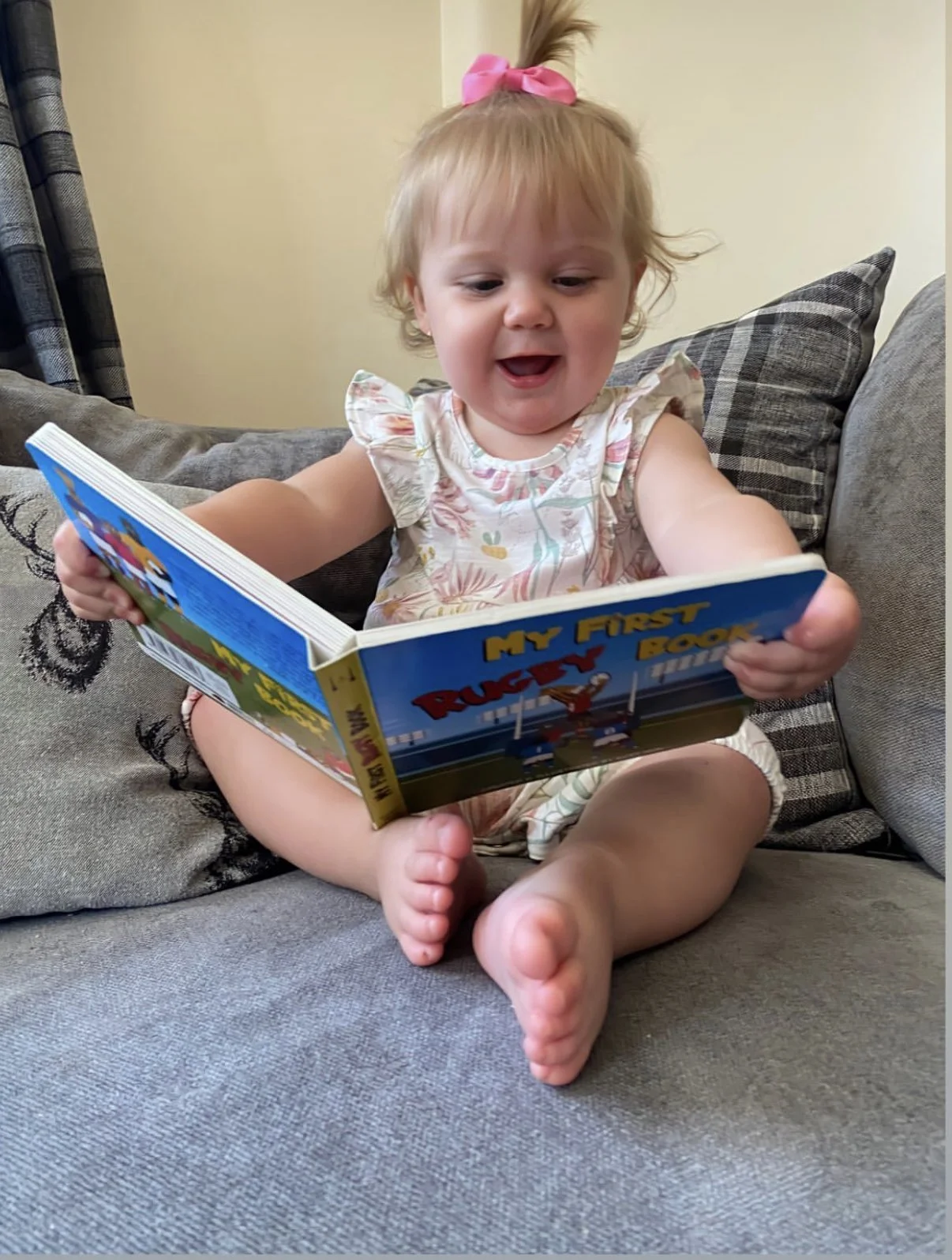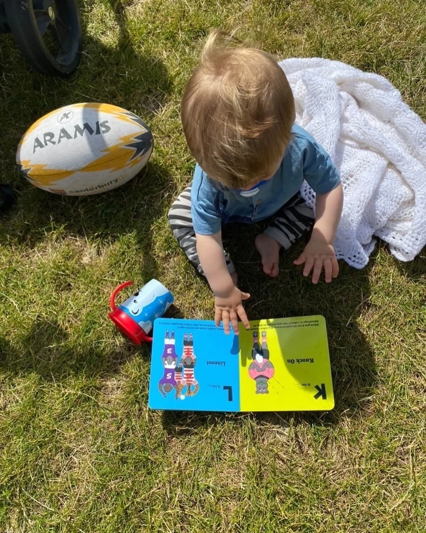 We obviously speak Spanish with him but since we got the book, he learns his English and rugby at the same time.